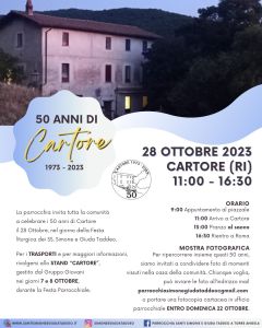 In occasione del 50esimo anniversario, la Comunità è invitata il giorno 28 Ottobre 2023 presso Cartore per celebrare insieme questo anniversario.